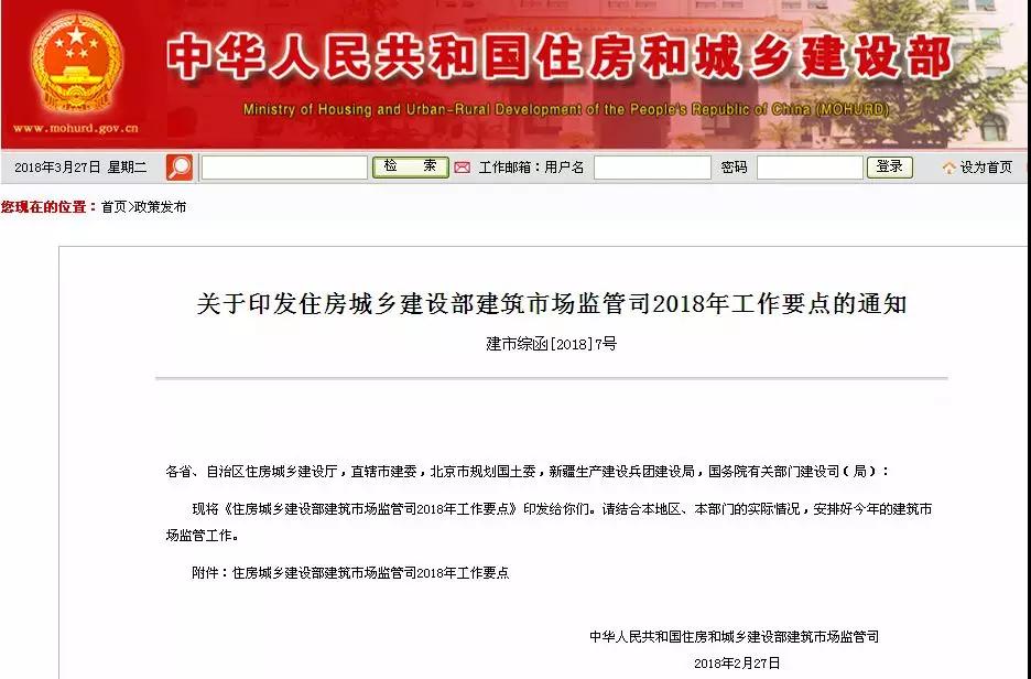 關(guān)于印發(fā)住房城鄉(xiāng)建設(shè)部建筑市場監(jiān)管司2018年工作要點的通知